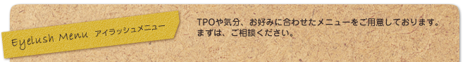 | 2009.08.31 | まつ毛エクステサロン Chirce(チルチェ)をオープンしてから2ヶ月を迎えようとしてます。 沢山の方にお越しいただき、ありがとうございます。 夏も終わり、秋のシックな装いに『まつ毛エクステ』で、魅力アップしてみませんか。 |